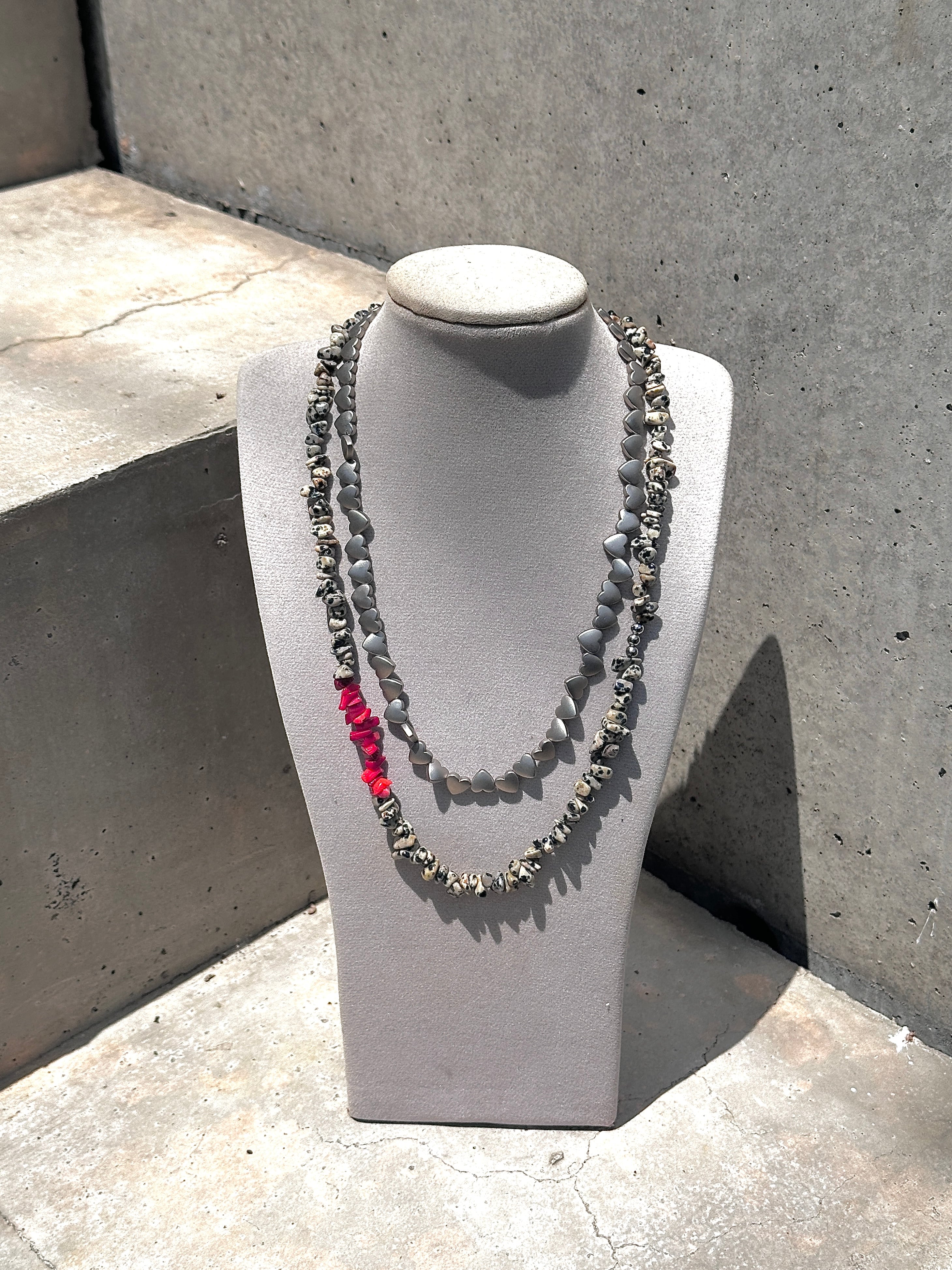 ・天然石(ダルメシアンジャスパー、ヘマタイト、赤珊瑚(着色))