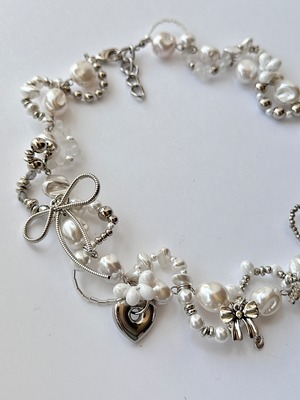 オールシーズン使える扱いやすい貝パールをメインに紡ぎました。