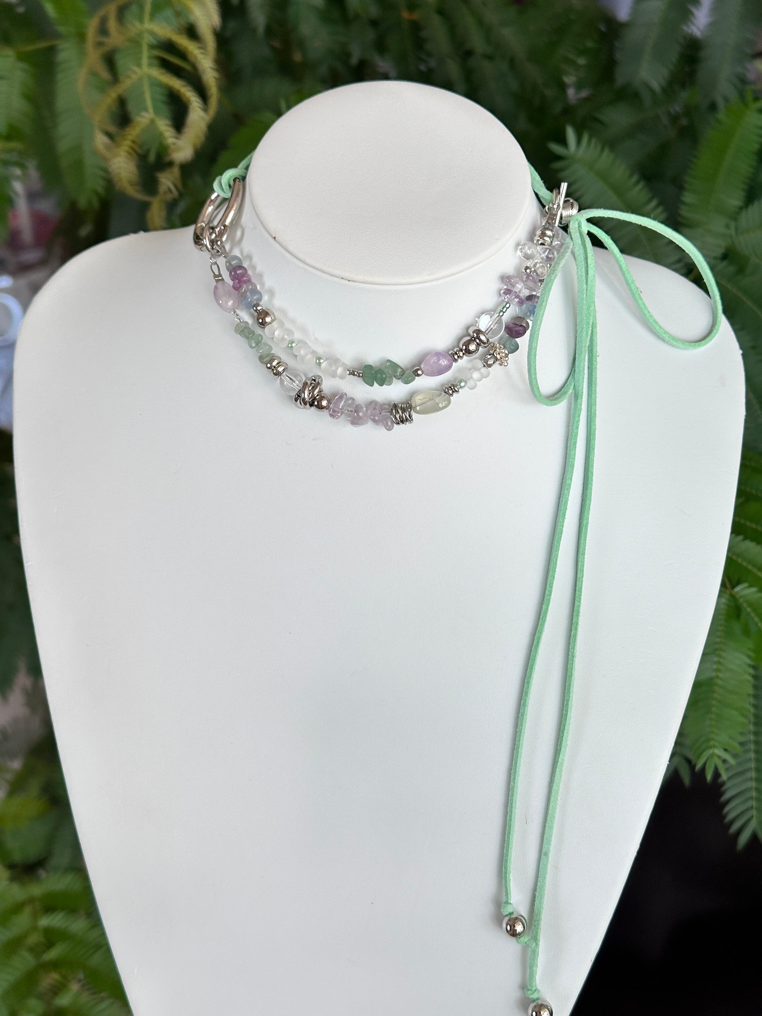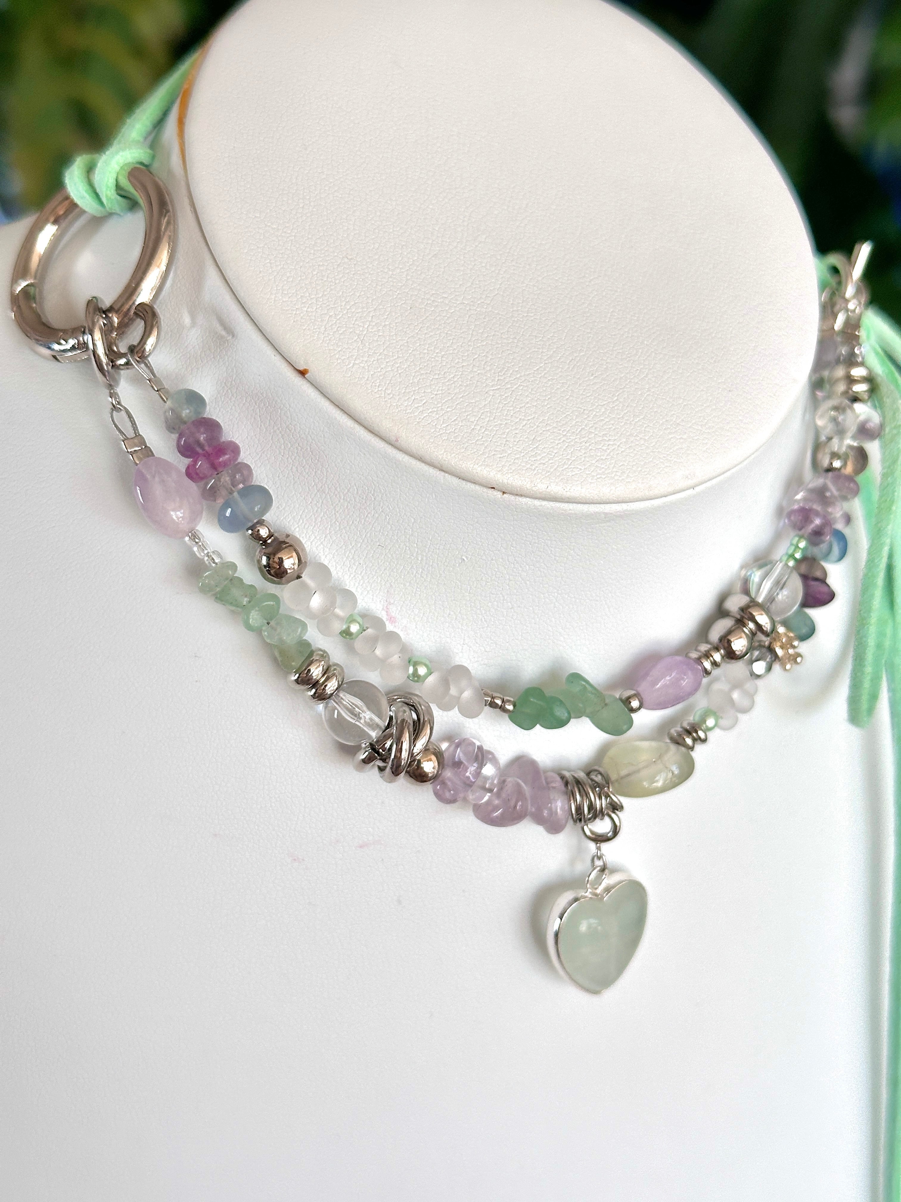 ・天然石(フローライト、ラベンダーアメジスト、アベンチュリン、プレナイト、水晶)