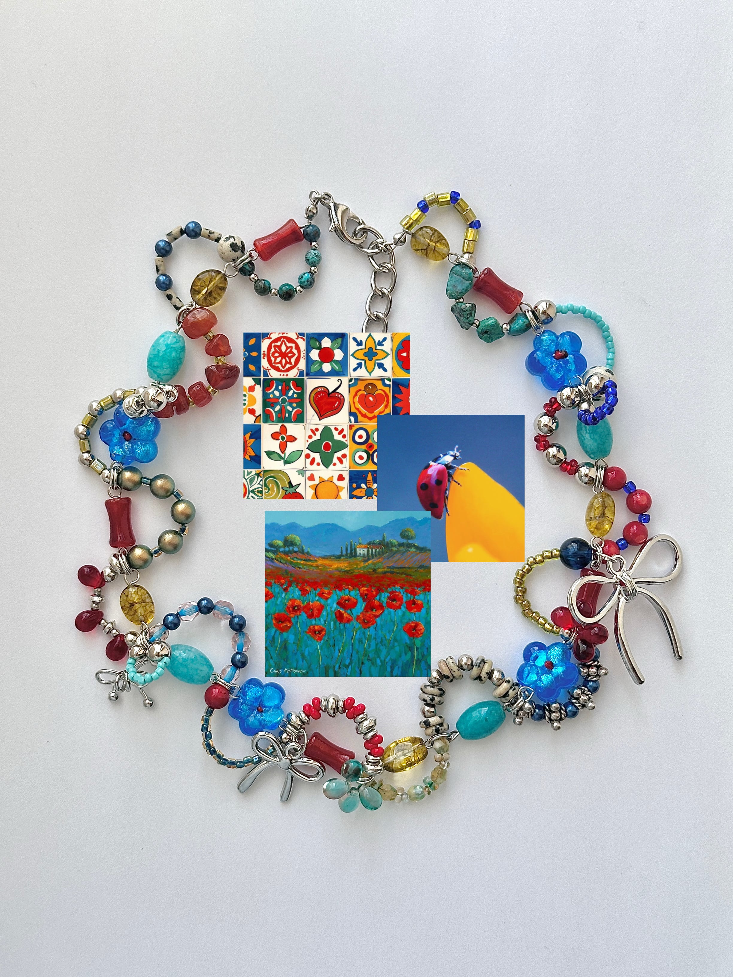 ・天然石(ダルメシアンジャスパー、カーネリアン、ターコイズ、赤珊瑚、水晶)