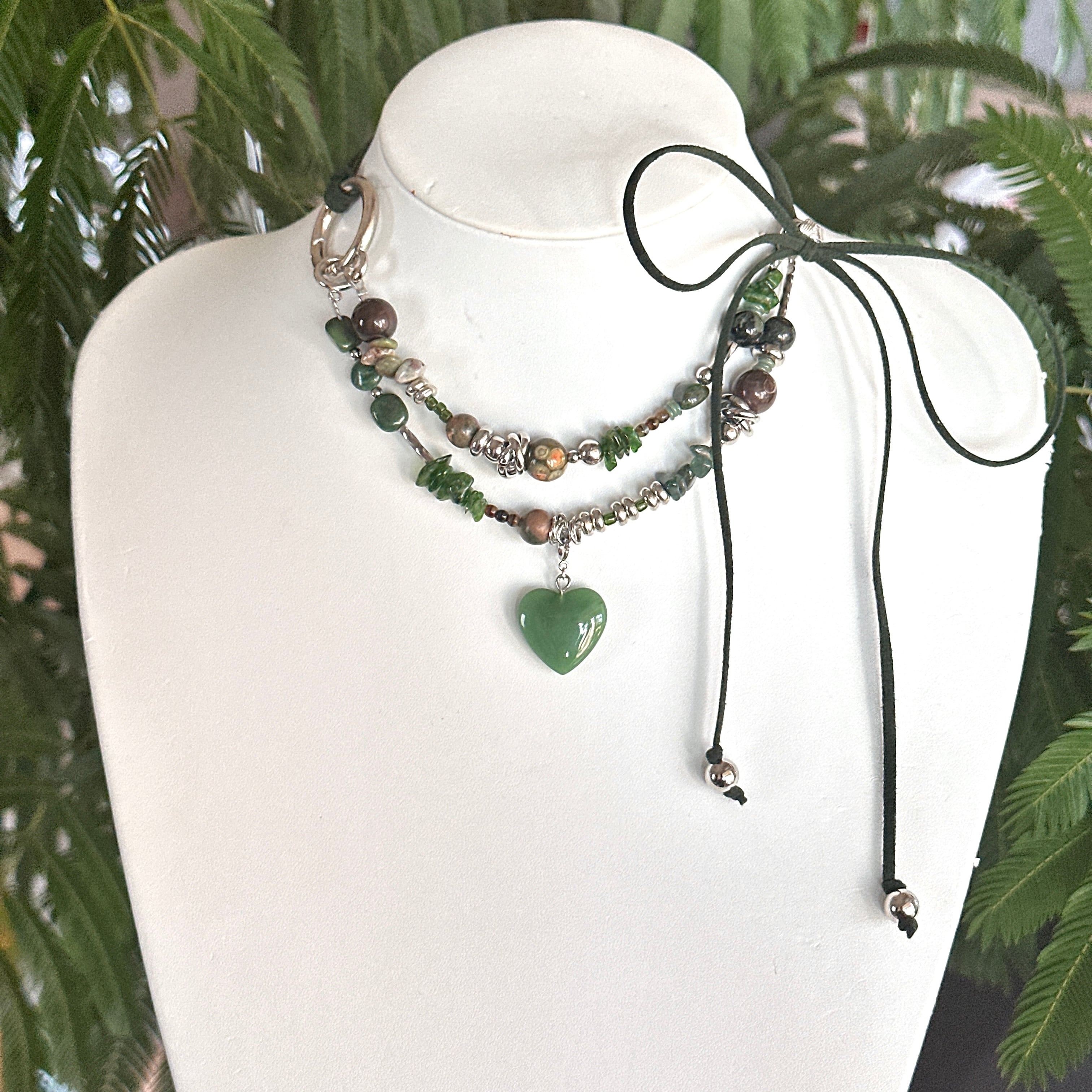 Aventurine heart charm choker.