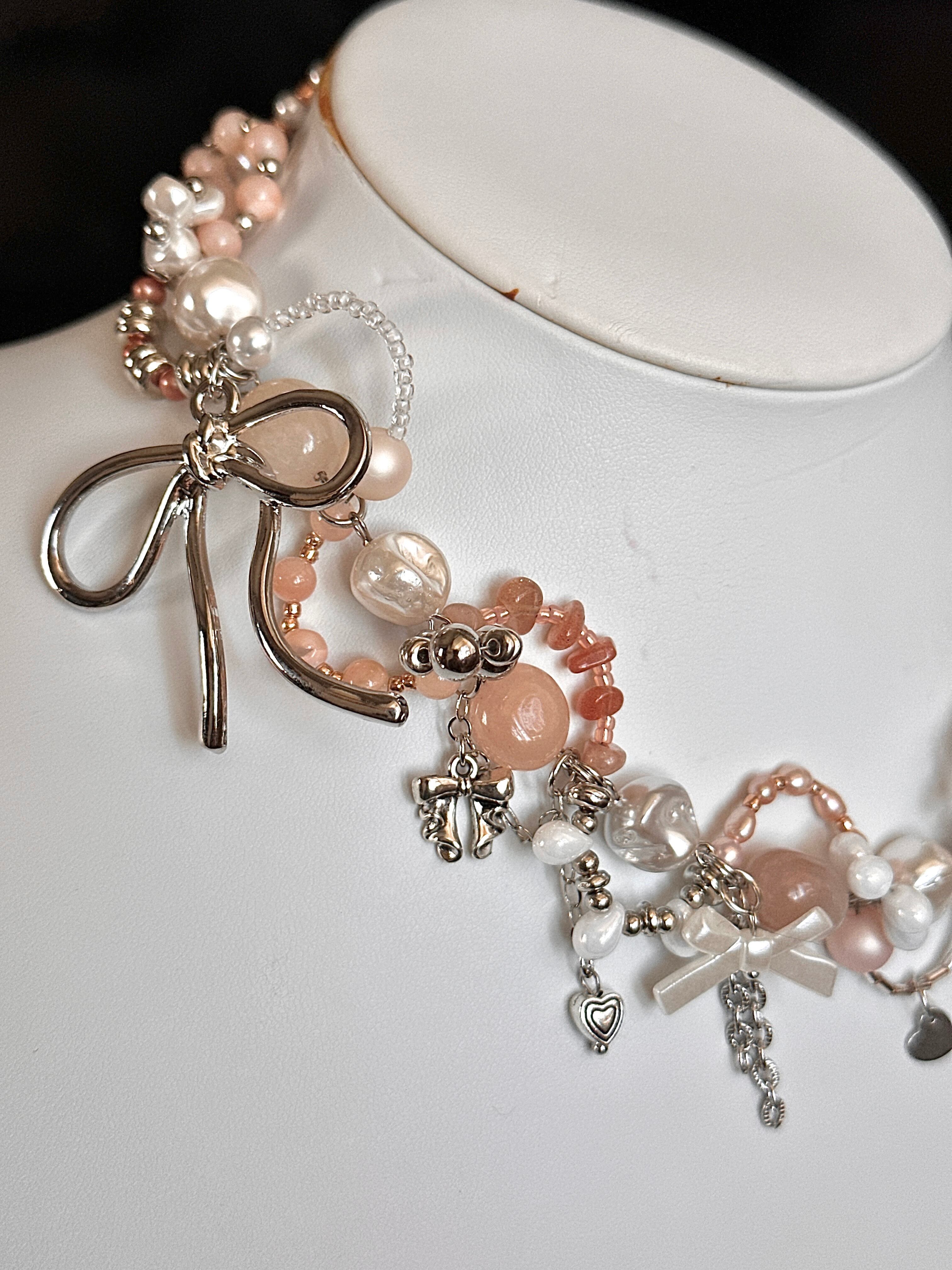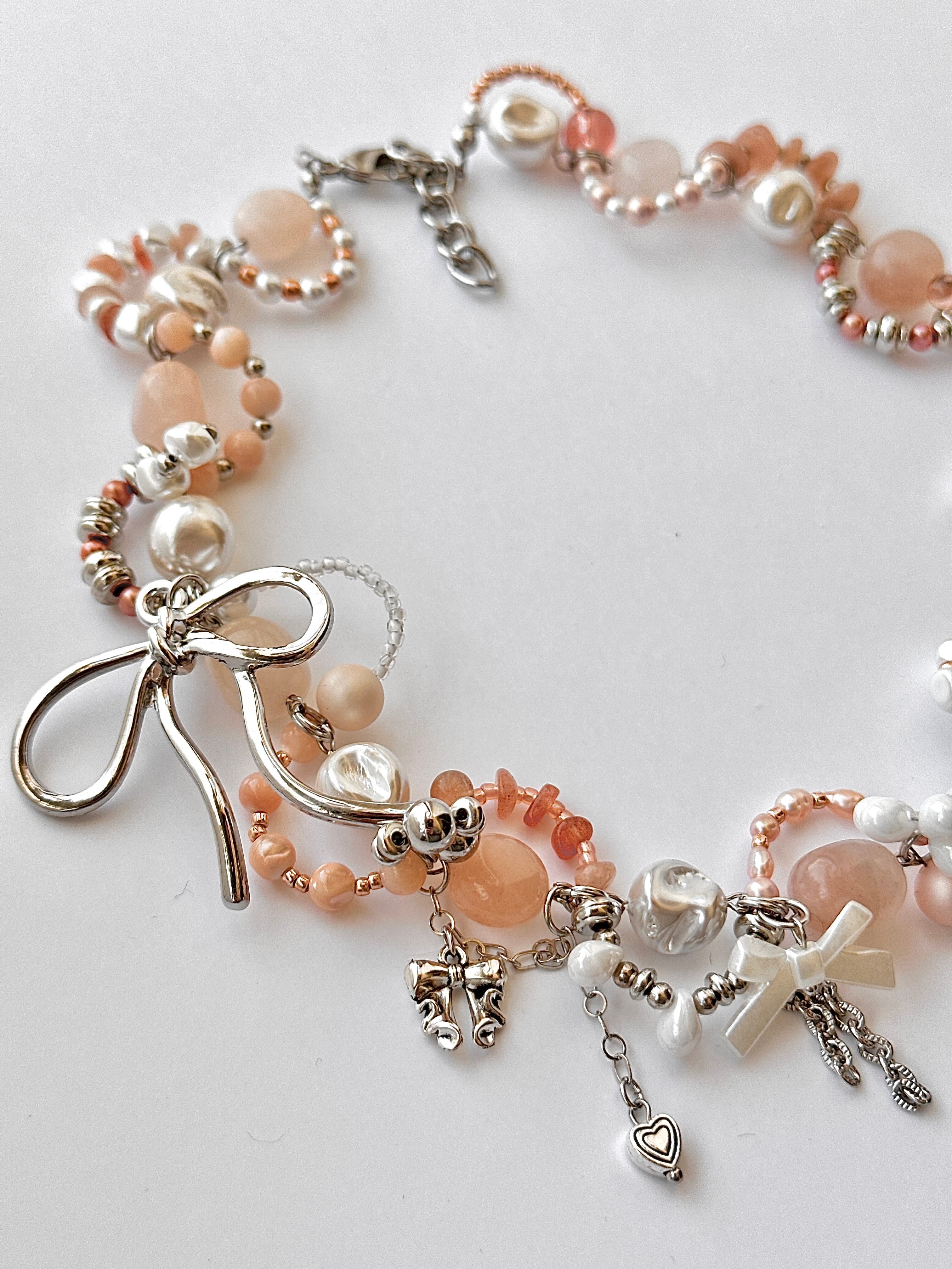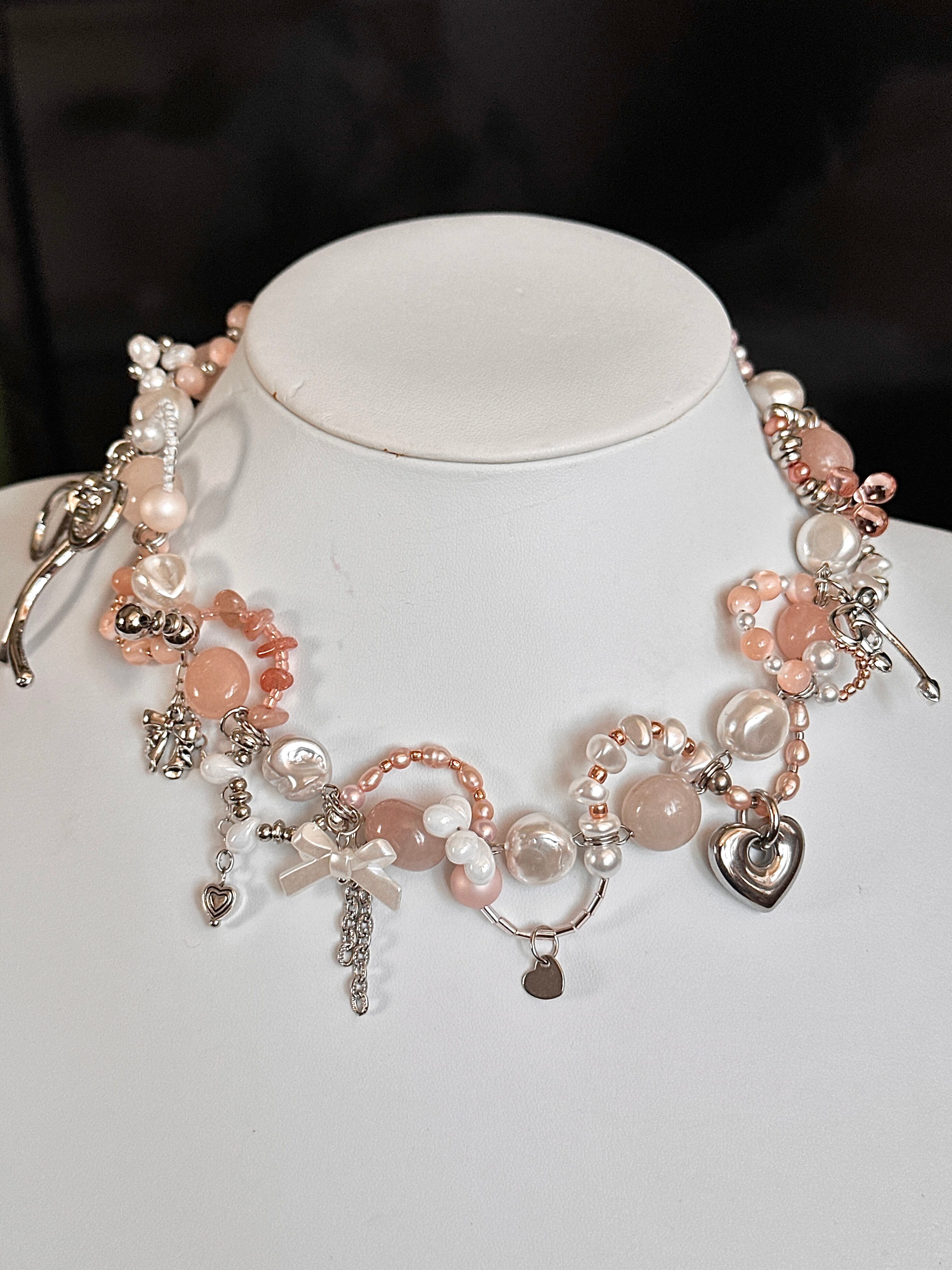ピンクアベンチュリンをメインに使用したフリルネックレス。