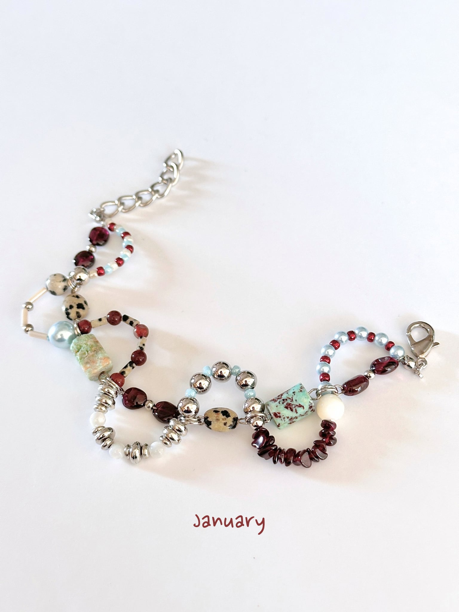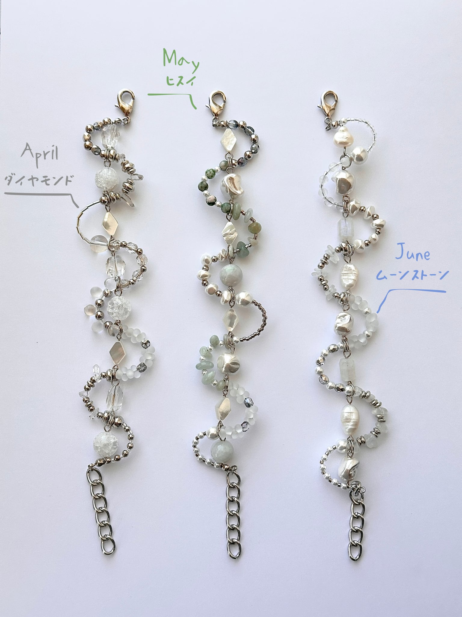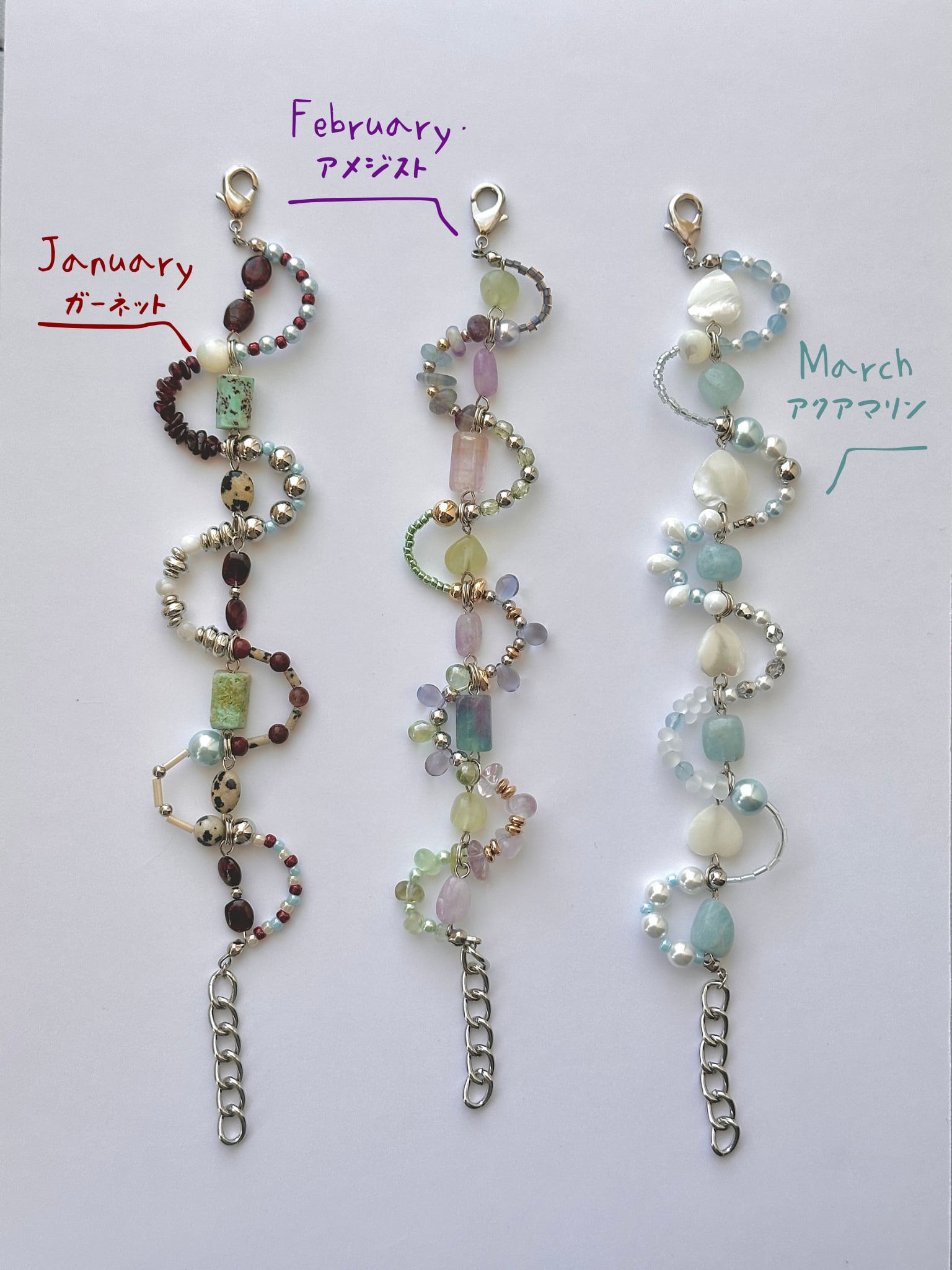 誕生石をテーマに12種類のデザインブレスレットを制作しました。