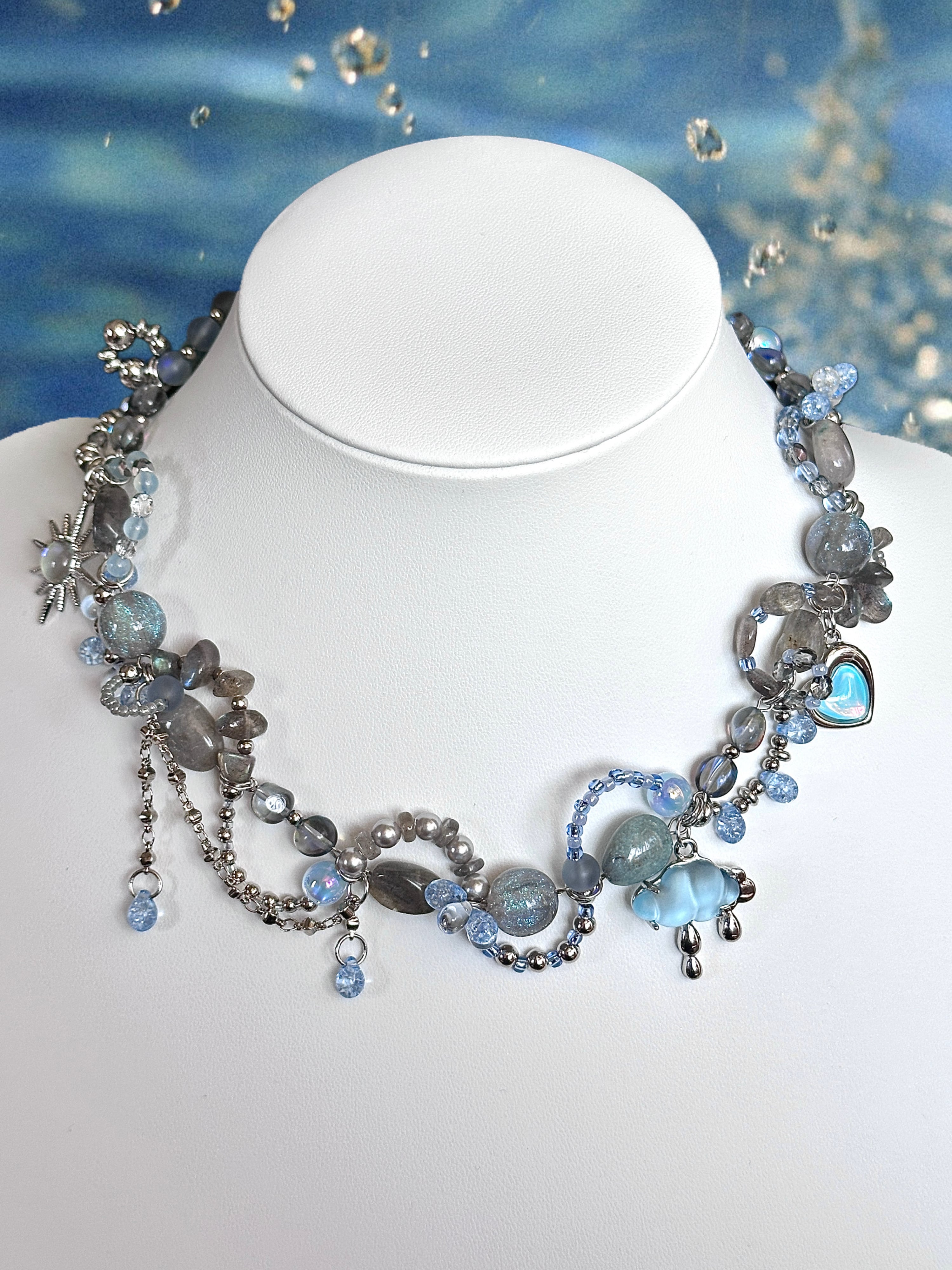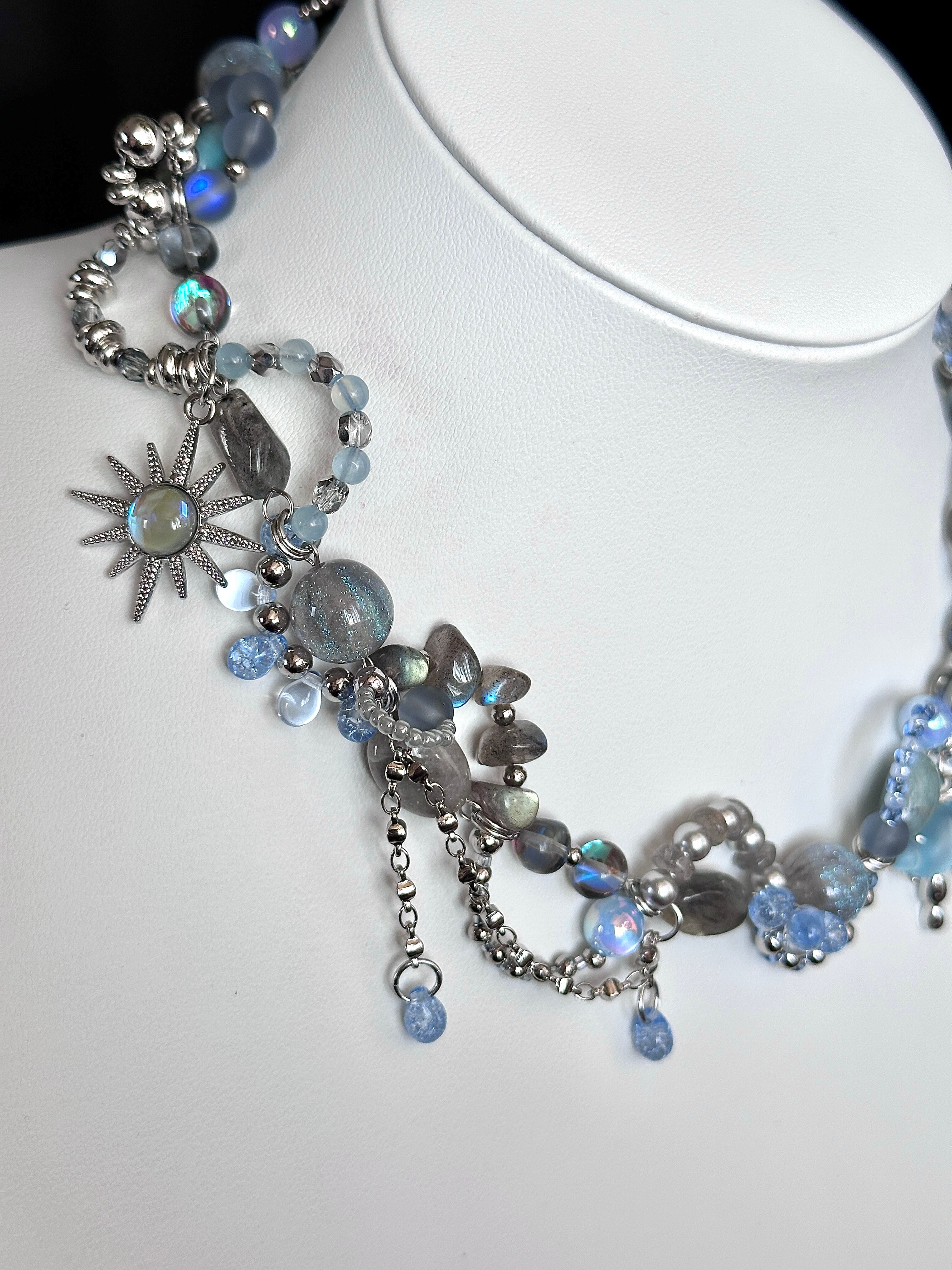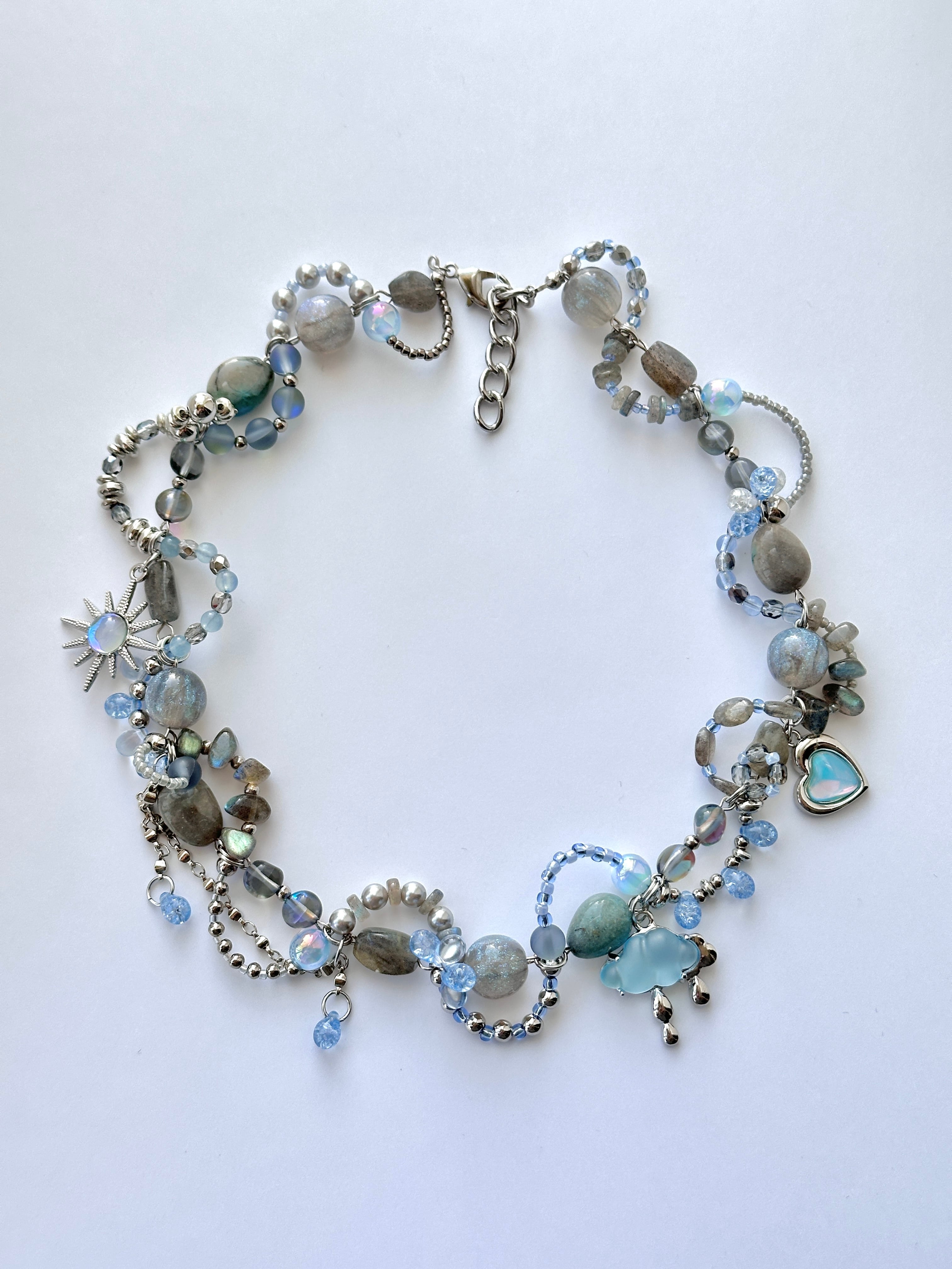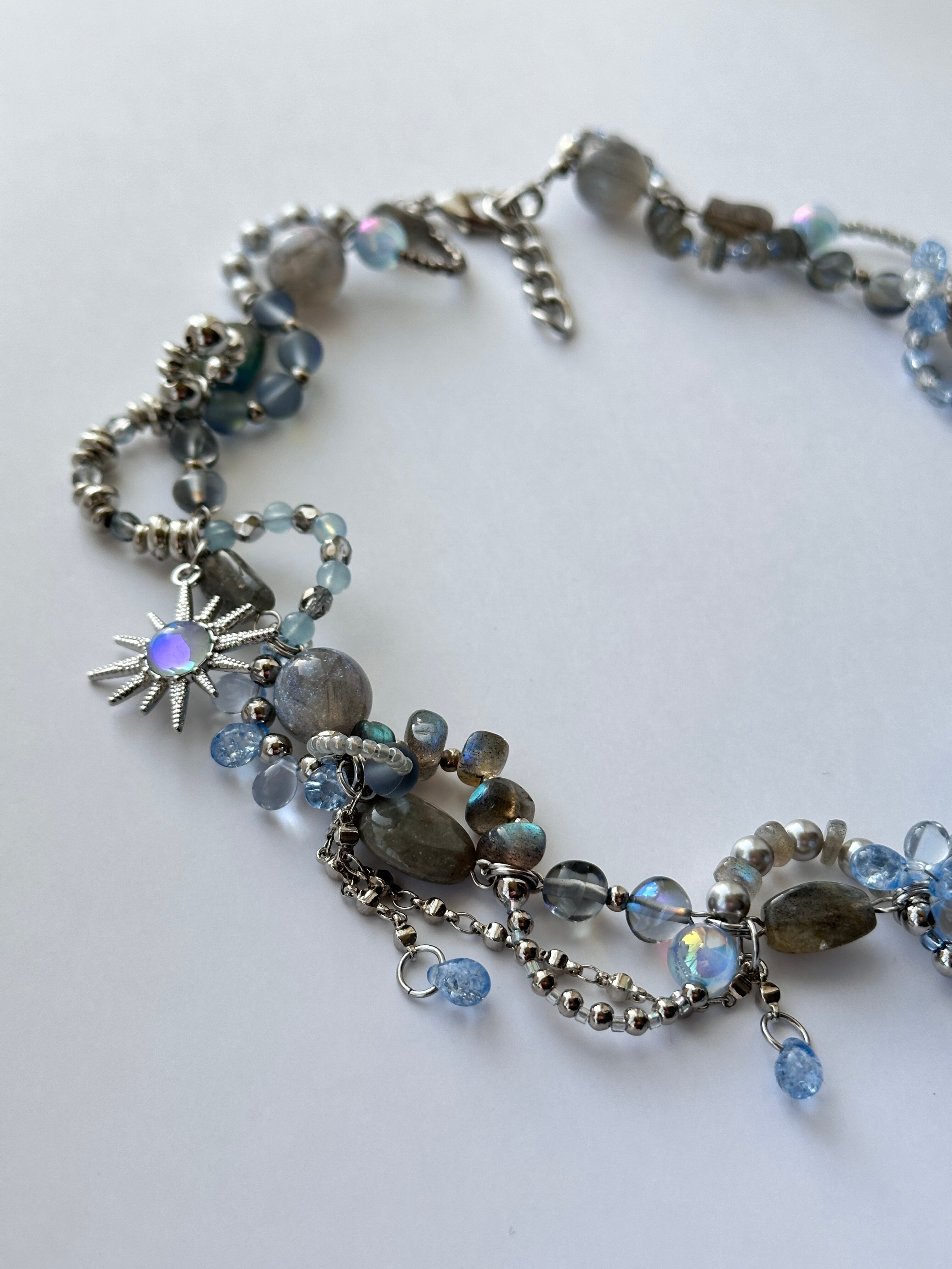 ・天然石(ラブラドライト、アクアマリン、グレイッシュブルールナフラッシュ、クリソコラ)