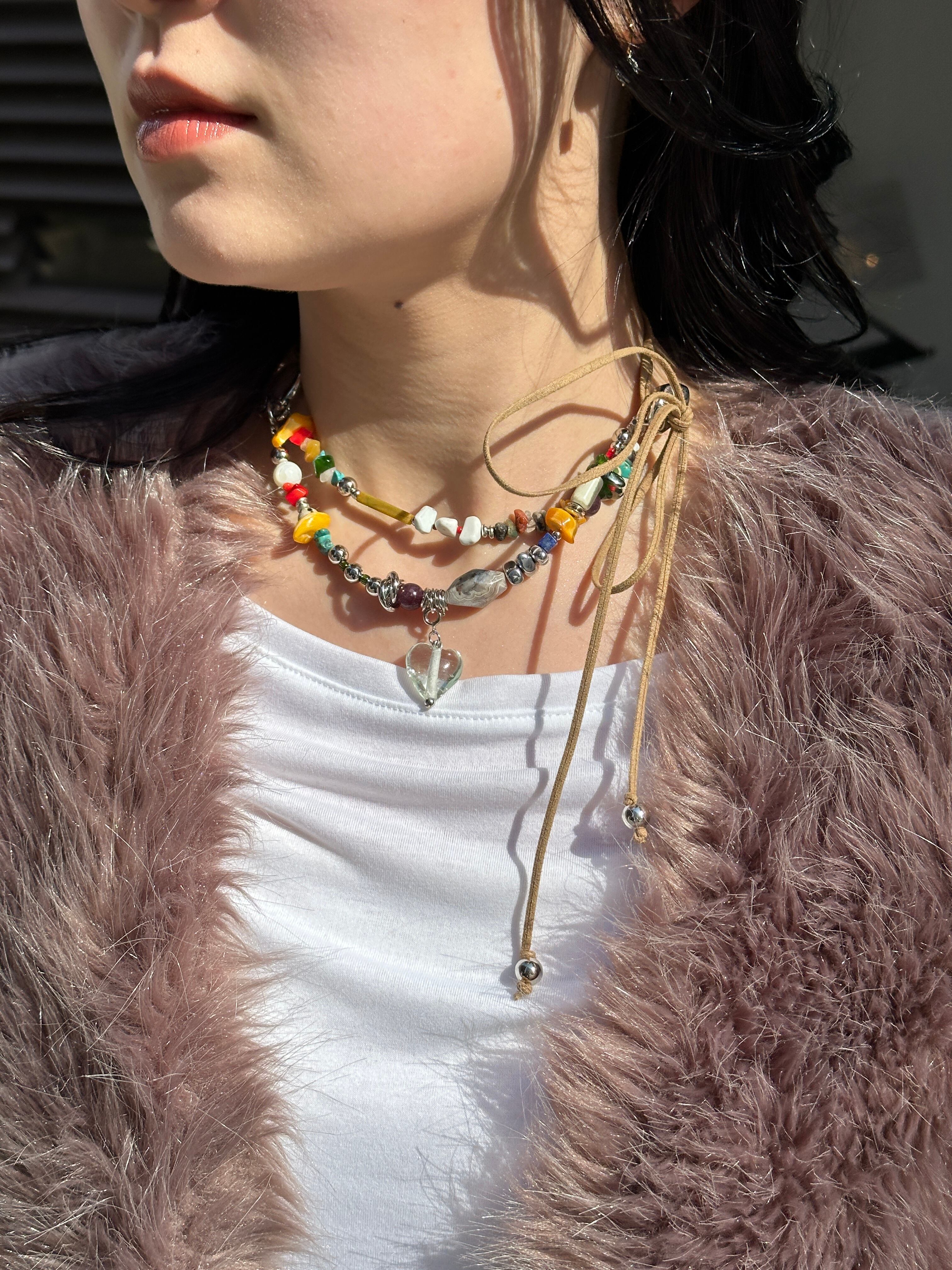 たくさんの色を使っているため、シンプルなコーディネートにもカラフルなコーディネートにも映えるチョーカーです。