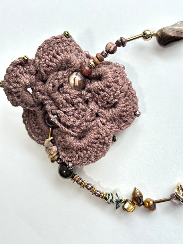 Knit rose brown mother of pearl choker.
